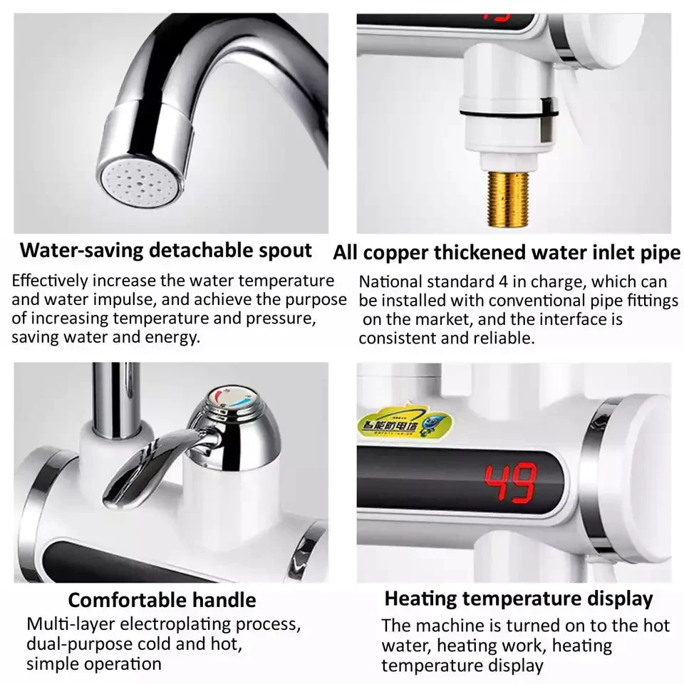 3000W Powerful Instant Heating – Hot water in 3 seconds, no tank, no waiting.
